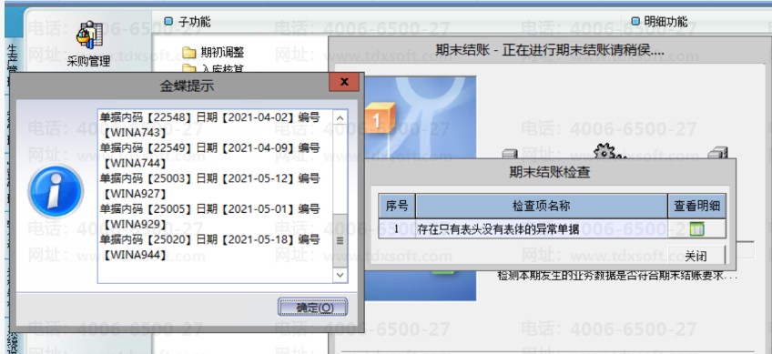 打入最新补丁后出现结账提示只有表头没有表体的异常单据