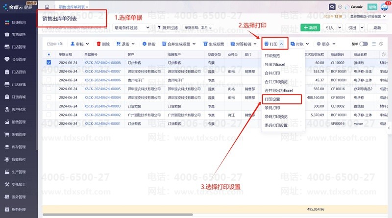 1.登录星辰,选择好要打印的单据