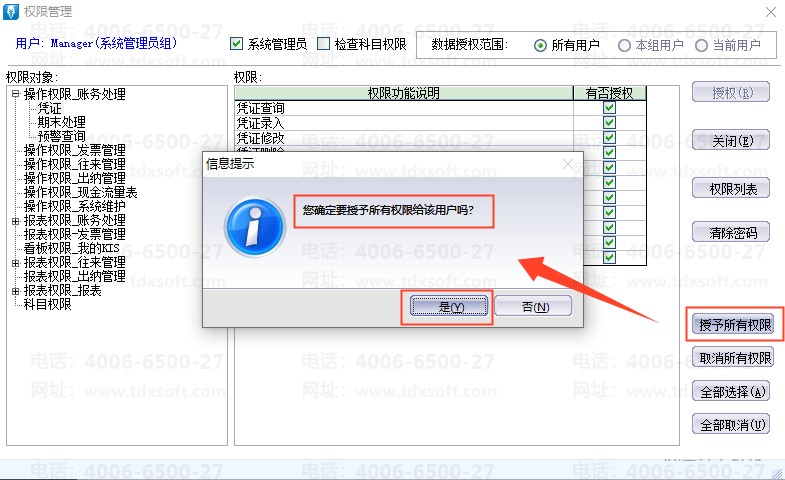 3、进入【系统维护】-【用户管理】,选择manager用户,点击【授权】,进入权限管理的界面;