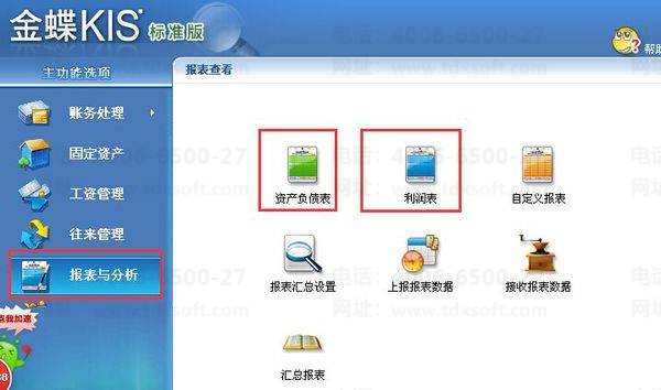 (1)打开金蝶软件--选择报表与分析--点击资产负债表和利润表。