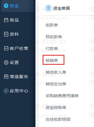 3、预付冲应付:【资金】-【核销单】选择【预付冲应付】,进行冲销