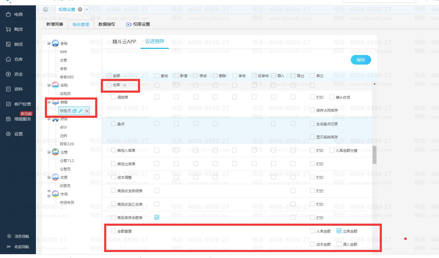 由管理员登录,然后在【设置】-【权限设置】-【角色管理】,根据子账号分配的角色,检查该角色,是否勾选“金额查看”的权限。