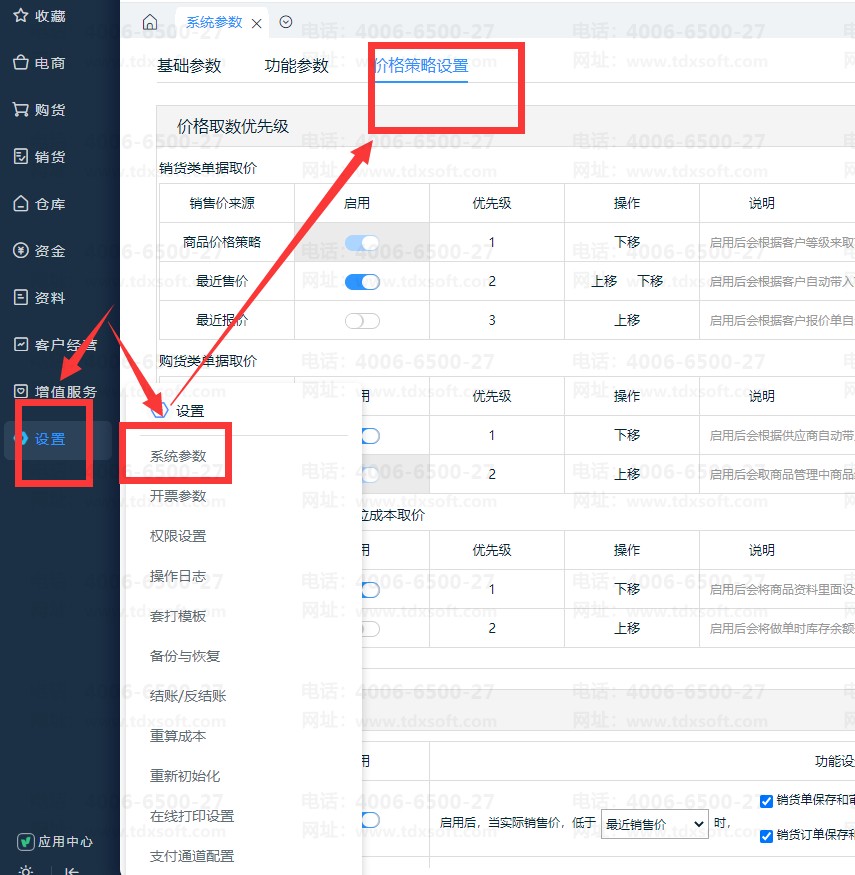 1、打开【设置】-【参数设置】-【价格策略设置】