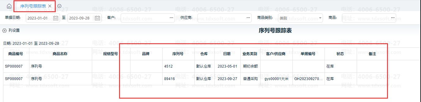 ① 序列号跟踪表:序列号跟踪表统计序列号的每一笔出入库记录