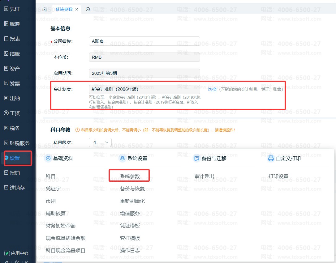 可进入服务查看当前账套使用的会计制度