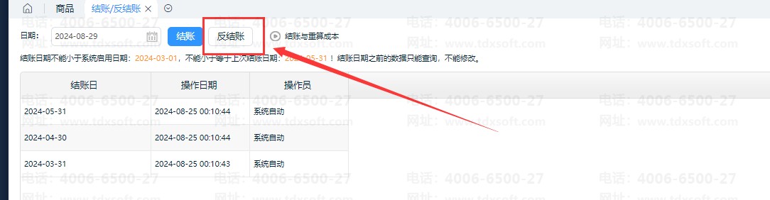 点击反结账回到2月份.即录入单据日期2024年3月1日之前即可。