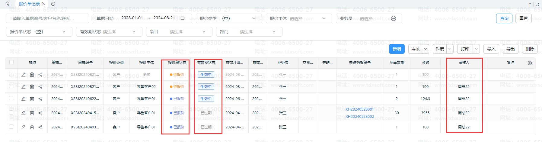 报价单是否可以直接删除,与报价单【审核状态】、【报价单状态】和【有效状态】有关。