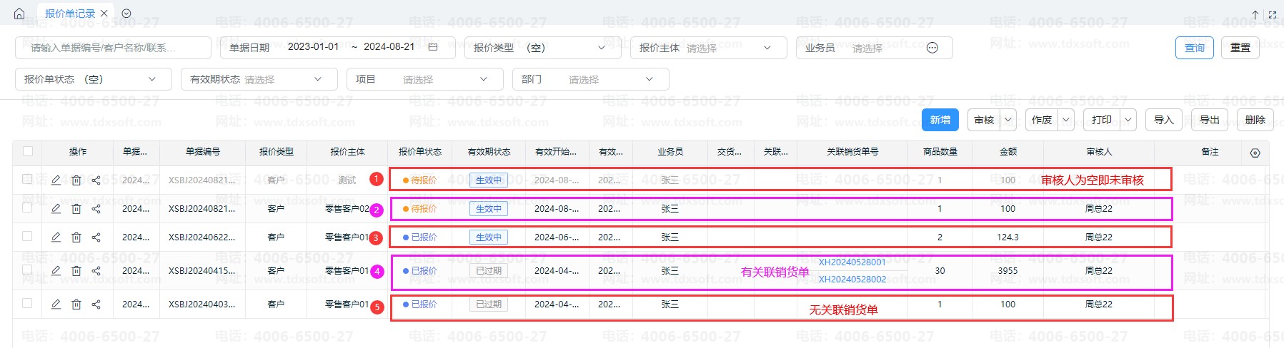 ⑤已审核且已过期且已报价,但未有关联销货单:可以直接删除。