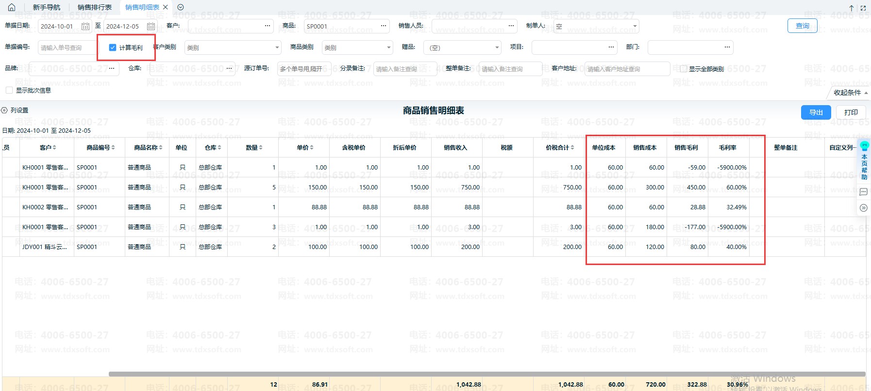 销售明细表、销售利润表、销售汇总表、销售排行表等,查询时勾选【计算毛利】均可以查看销售成本、销售毛利、销售利润等。