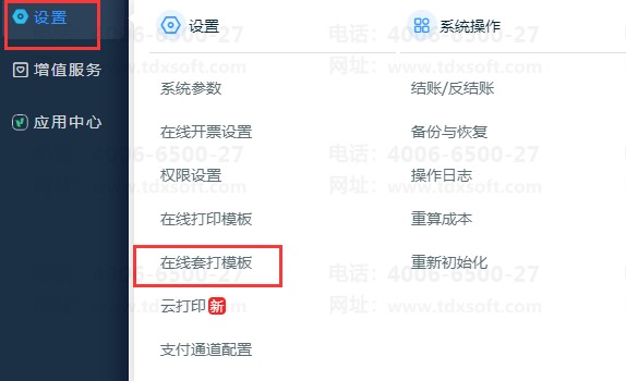 操作路径:在线专业套打,可在【设置】-【在线打印设置】-【在线专业套打设置】中设置好模板,再打印。