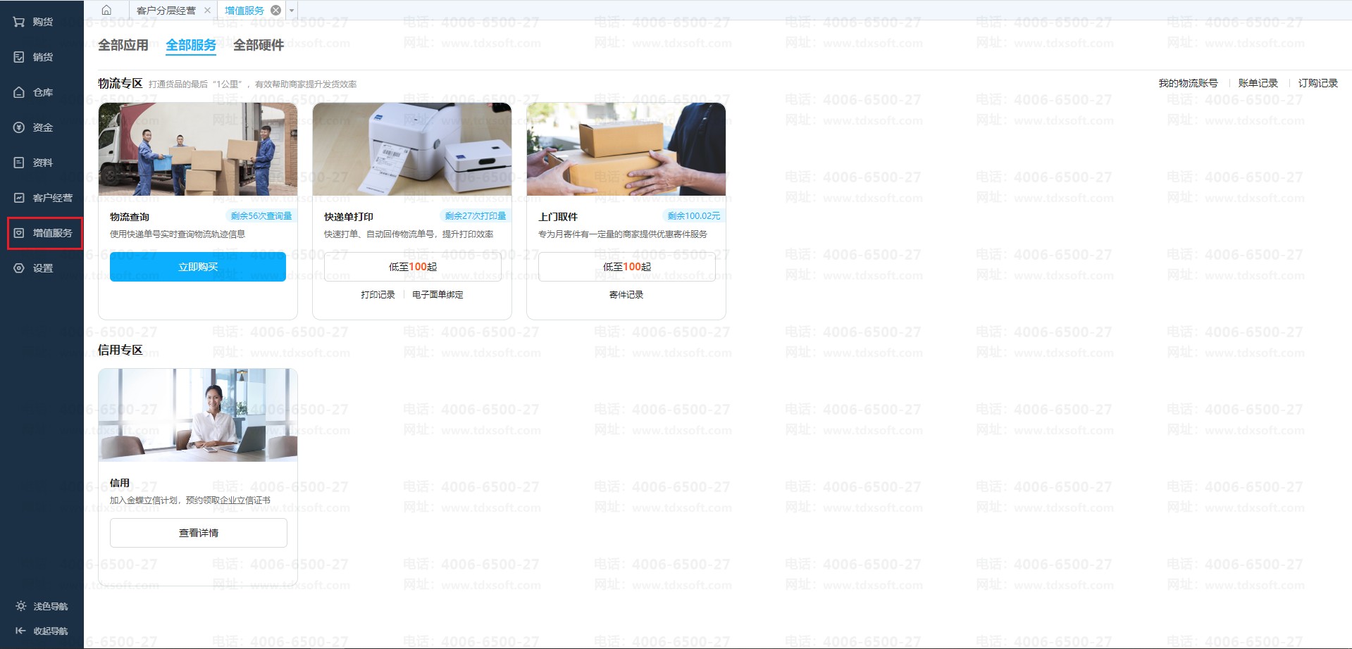 ①菜单栏点击【增值服务】先购买相应的物流服务;