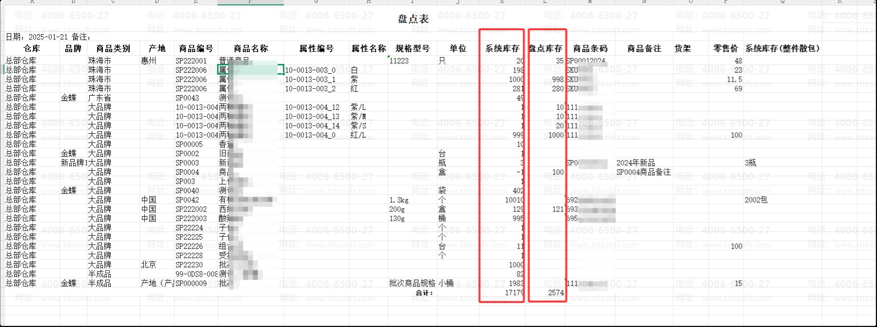已在系统中录入盘点库存并生成盘点记录,需导出带有盘点库存数的盘点表。