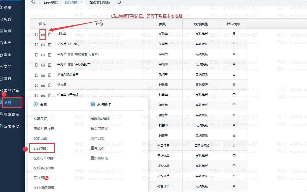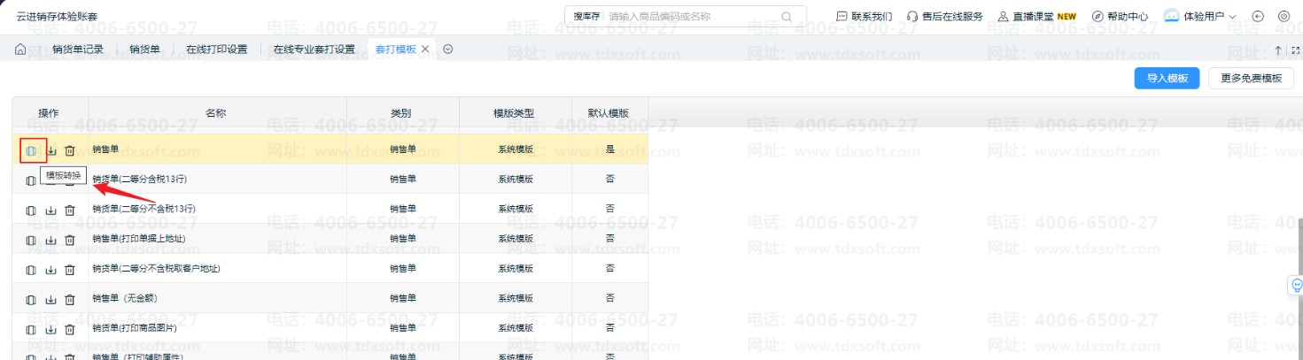 ②云进销存可以将专业套打模板转换为在线套打模板,在【设置】-【在线套打模板】中可以编辑对应的模板(推荐使用在线套打)