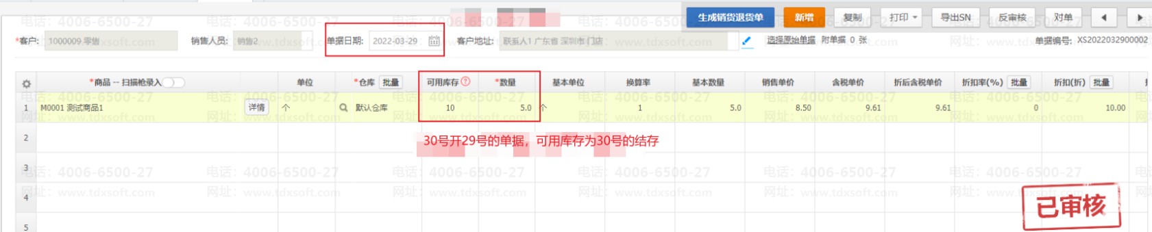 b.后补单录销货单,单据日期:3月28、3月29;