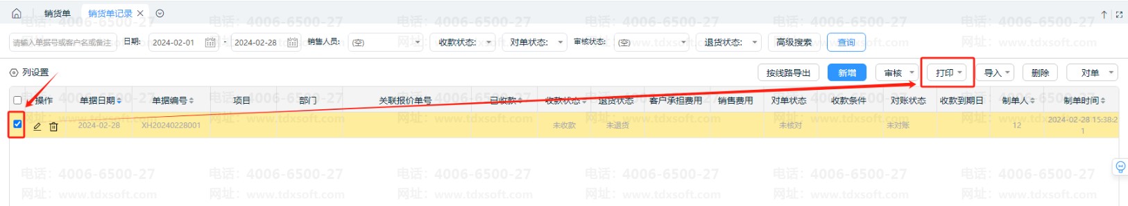 2、打印单据时,未勾选单据,直接点打印按钮。