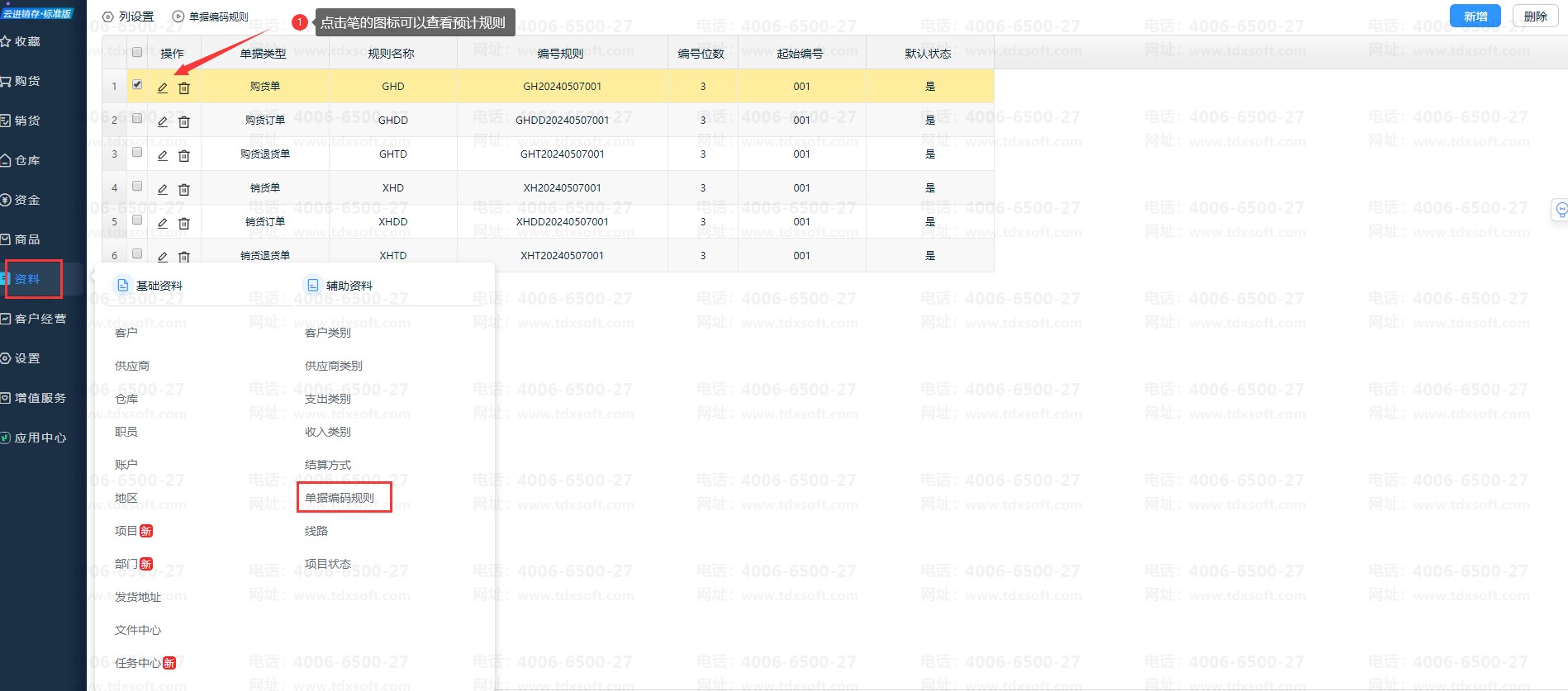 在【资料】-【编码规则】,点右上角【新增】,按企业实际情况设置
