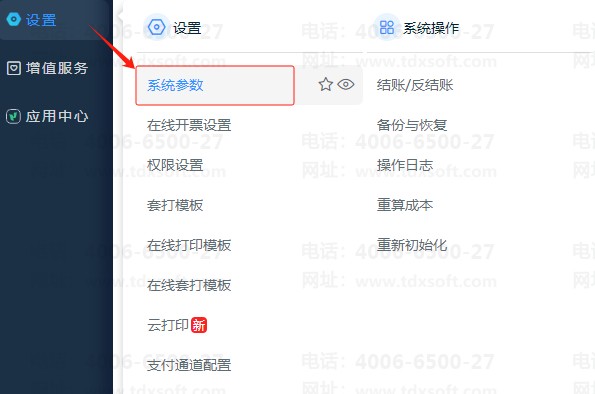 首先,打开进入【设置】-【系统参数】界面,如图: