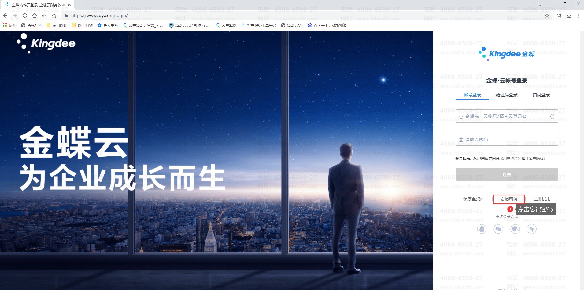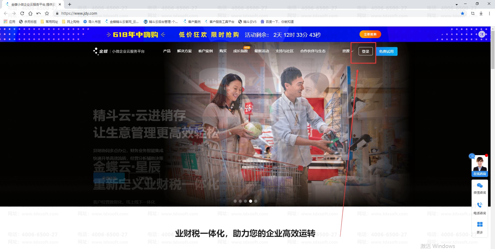 1、打开精斗云官网 https://www.jdy.com/ ,点击右上角【登陆】