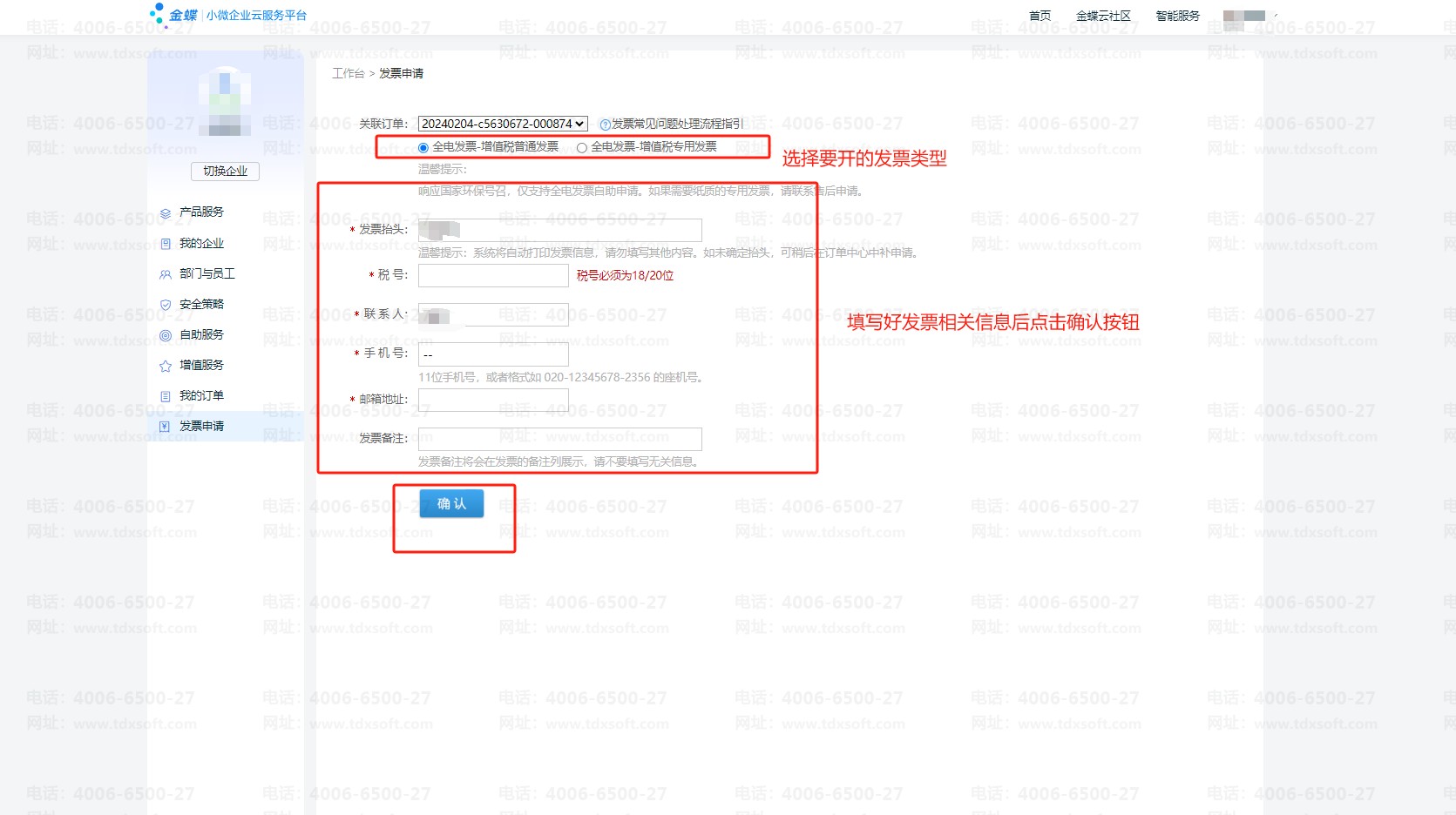 ①新购订单申请开票时,发票抬头默认带出当前企业认证信息,支持手工修改为实际开票信息。