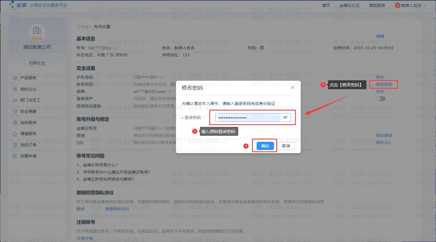 为保障账号安全,建议定期修改登录密码。修改密码需验证原密码(需知道账号原密码),且员工账号与管理员账号均为个人专属资产,密码仅能由账号本人修改,管理员无法修改子账号密码。