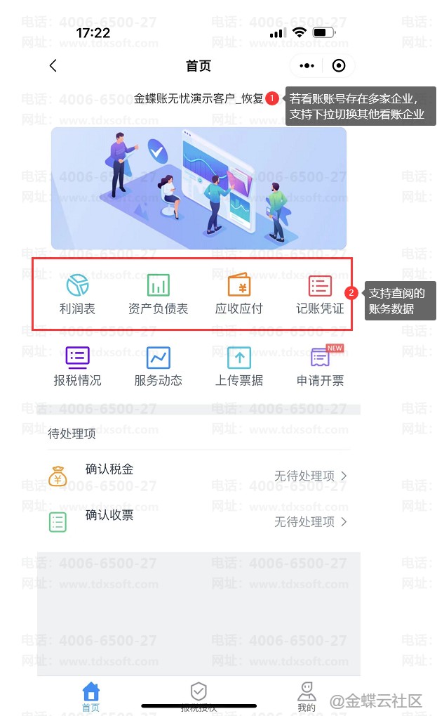要求代账公司使用授权功能给代账客户创建看账账号,代账客户通过手机端或网页端实时查看代账公司出具的账务数据(包含凭证、报表等)