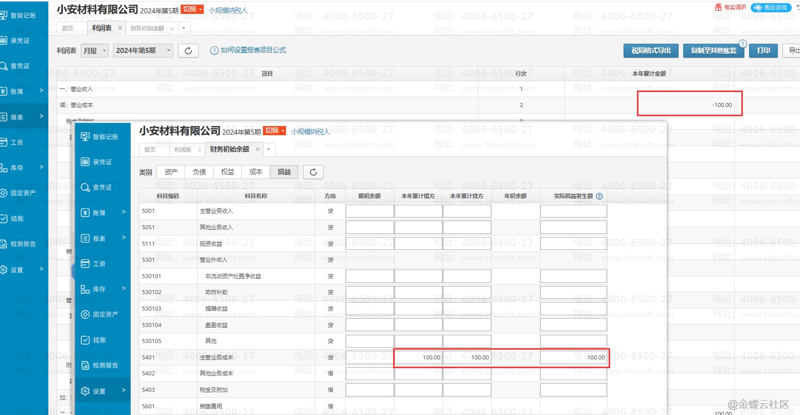 财务初始余额本年累计金额与报表本年累计金额不一致,该如何处理?比如主营业务成本科目,在财务初始余额本年累计是填写的正数,但是在利润表显示的是负数,需要怎样解决?