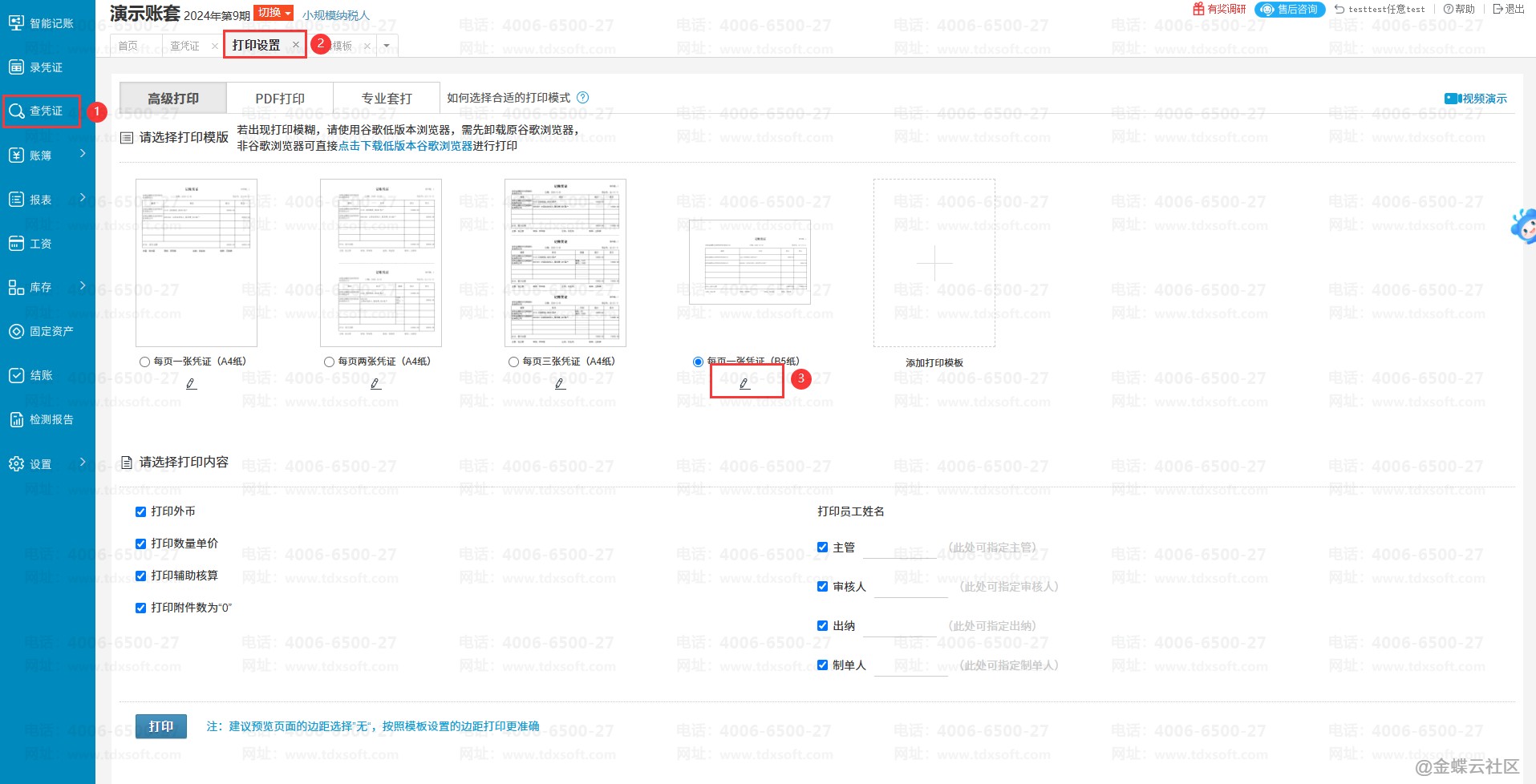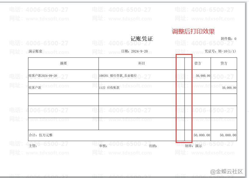 由于高级打印的凭证格式取决于打印模板,出现此现象的原因是因为表格线是默认体现在D列的右表格线上,当D列被隐藏时,则无法显示对应的表格线,可以参考下方步骤进行修改。