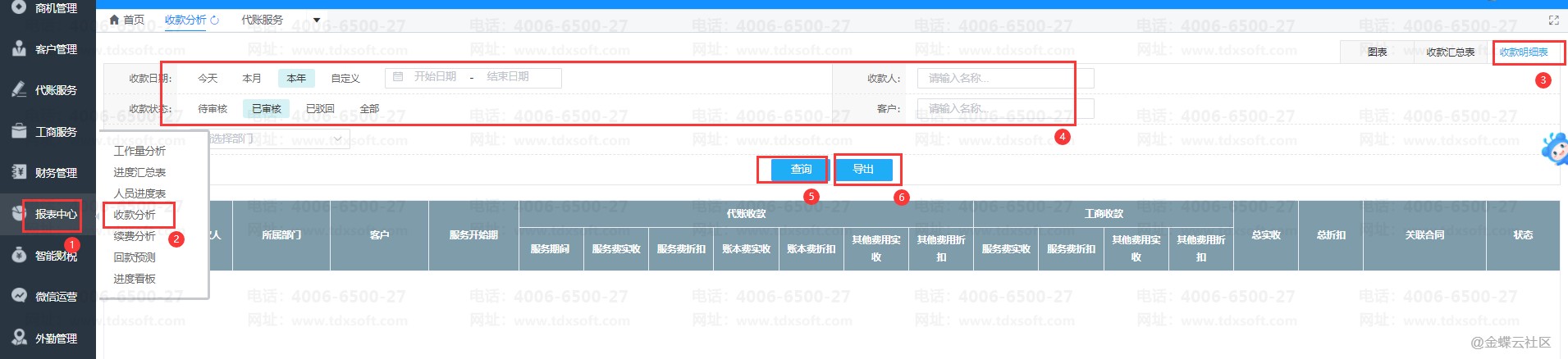 如何导出收款明细表?