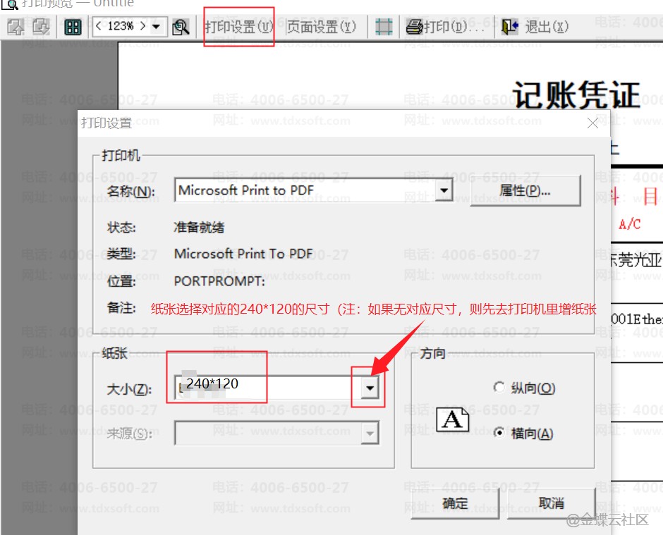 凭证打印纸张是金蝶记账凭证KP-J105或者240mmⅹ120mm尺寸,要如何打印?
