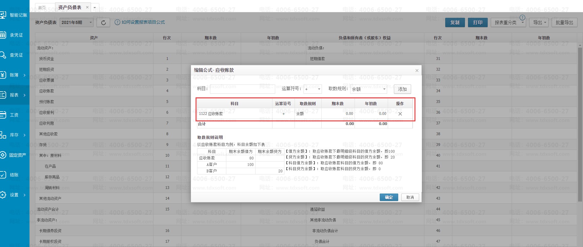 根据提示将1122科目添加到资产负债表【应收账款】项目的计算公式中