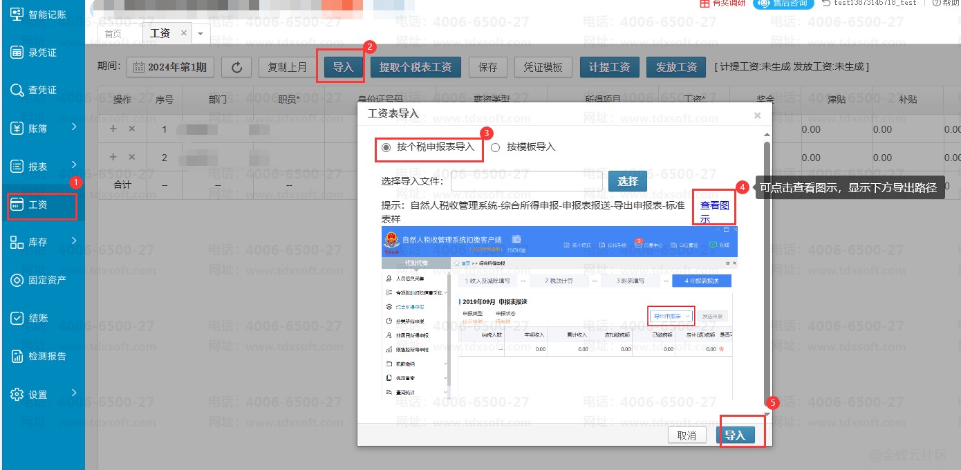 工资表导入方法有:按个税申报表导入或者按模板导入