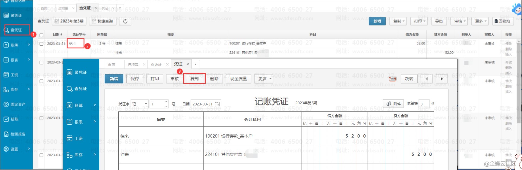 账无忧怎样复制凭证