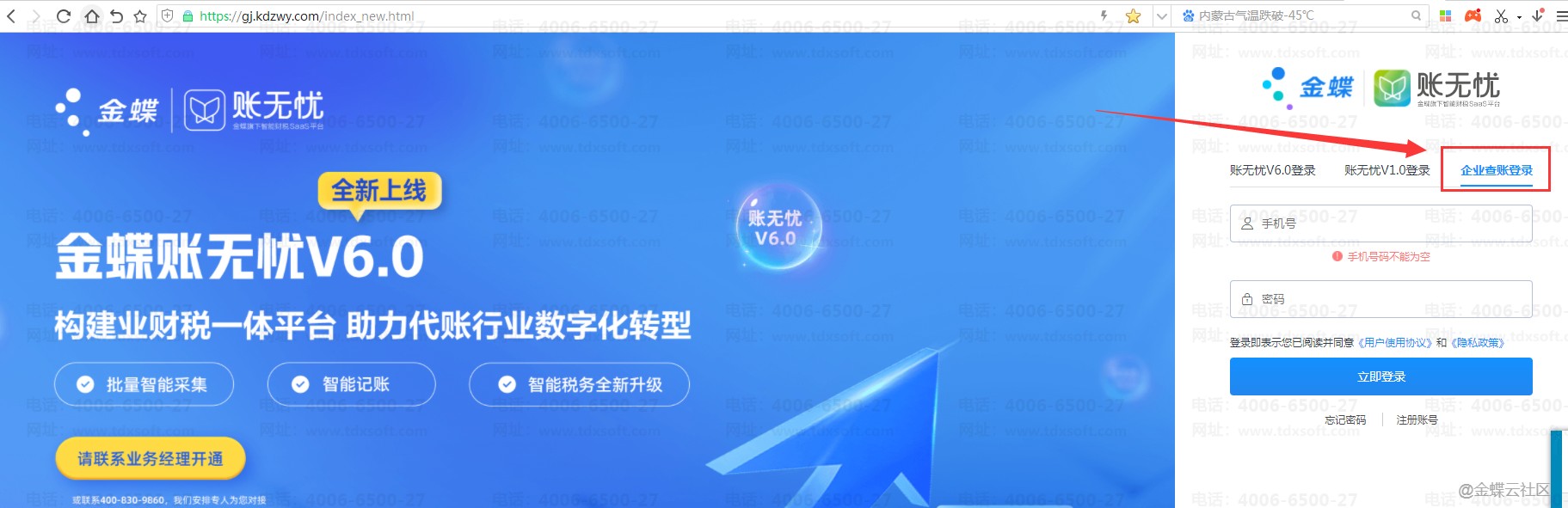 代账客户使用浏览器搜索登录入口(网址:https://gj.kdzwy.com/index_new.html),企业查账登录方式,