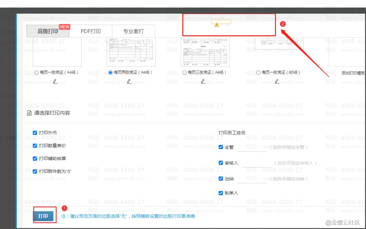 【问题描述】:高级打印点击打印提示三角形感叹号,如下图