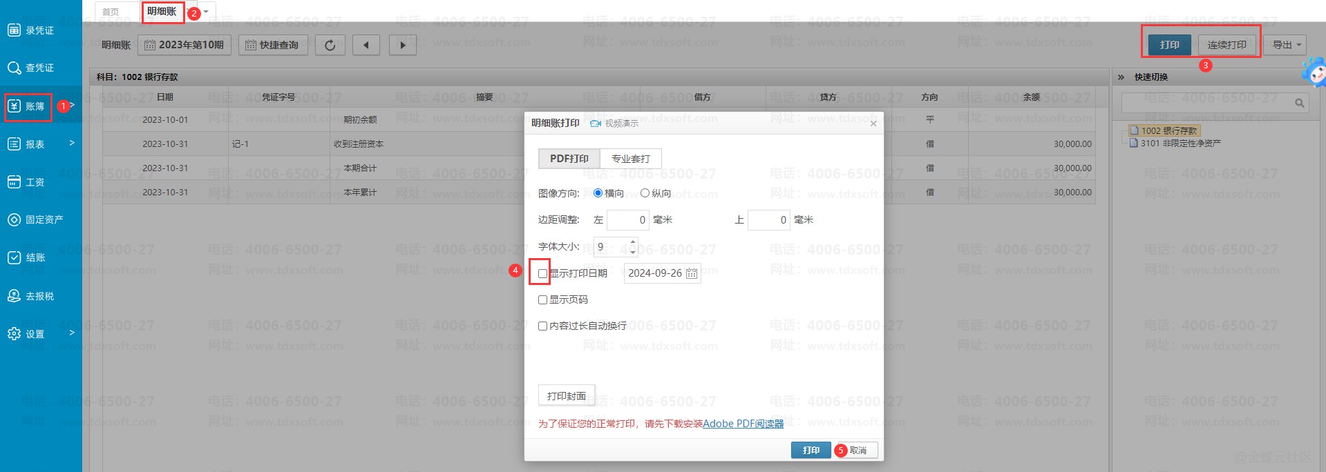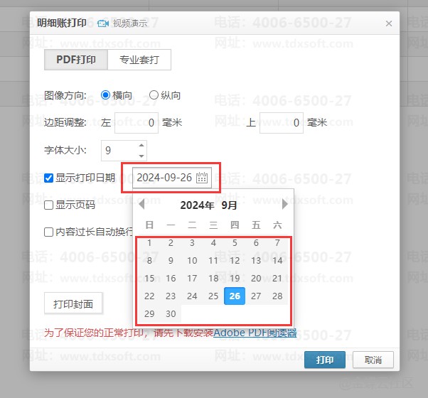 账无忧打印明细账需要显示打印日期如何操作
