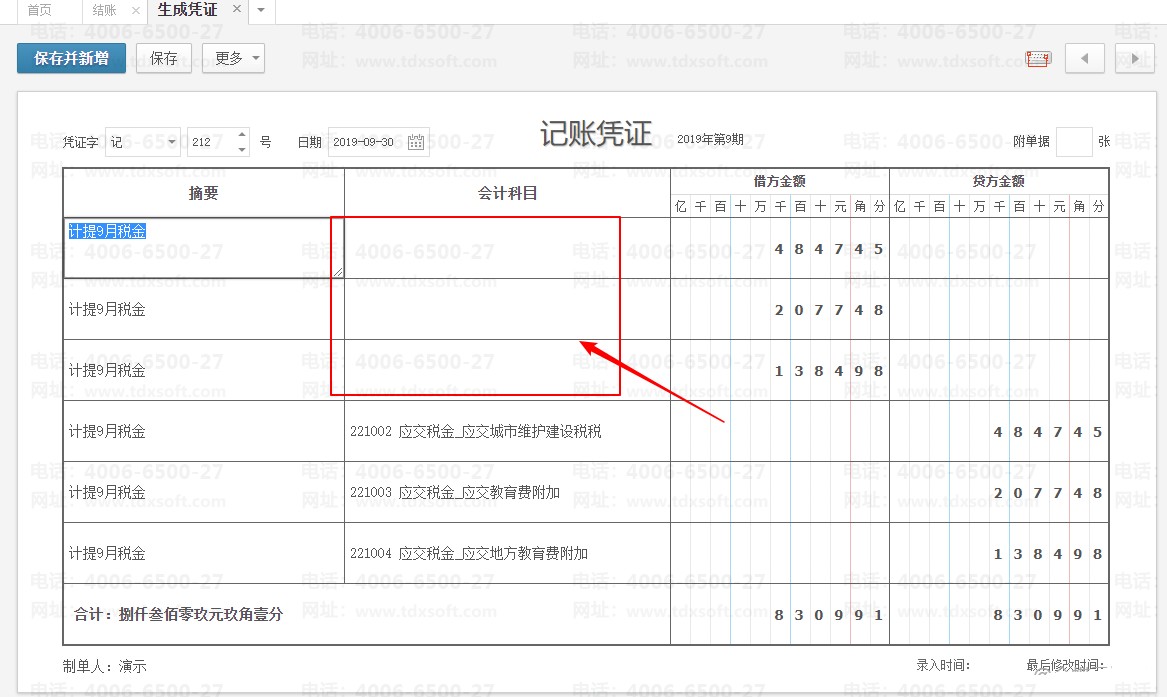 V6.0账无忧计提税金模块显示金额但点生成凭证显示有空白分录无法自动生成