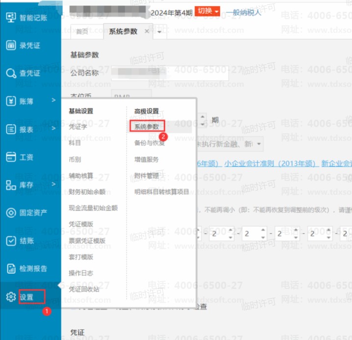 进账套后打开【设置】→【系统参数】界面,即可查看账套启用期