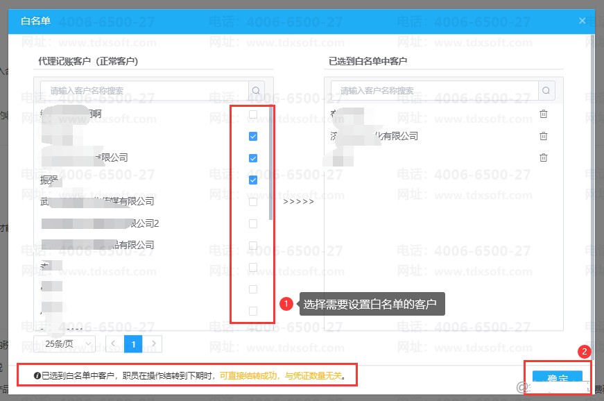 可以设置白名单客户,选中设置白名单的客户将不收凭证数量的限制,可直接结转。