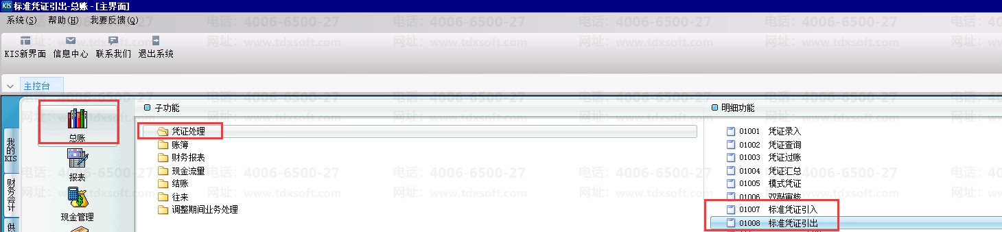 1、进入旗舰版主界面,点击【财务会计】→【总账】→【凭证处理】;通过【标准凭证引出】,将凭证引出到本地后,再通过【标准凭证引入】引入到账套,若是需要增加凭证什么的,可以在标准凭证引出的EXCEL里面做维护后再导入。