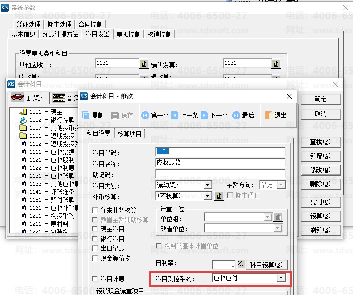 系统参数设置里面,销售发票对应选择的科目是未受控的,可按F7带出科目界面后,修改科目受控系统:应收应付即可。