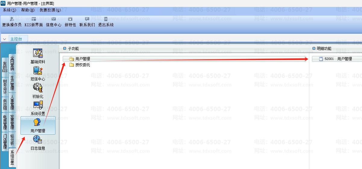 1、用管理员用户登录账套后,进入用户管理;