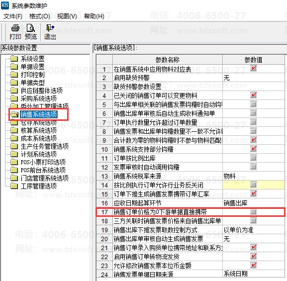 单击打开[系统设置]-[系统设置]-[销售管理]-[系统设置]-[销售系统选项],勾选参数“销售订单价格为0下游单据直接携带”。