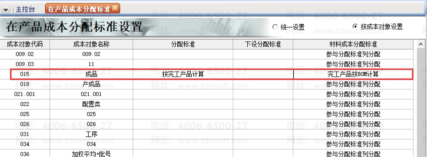 【温馨提示】修改单个成本对象时,“在产品成本分配标准设置”设置为“按成本对象设置”。