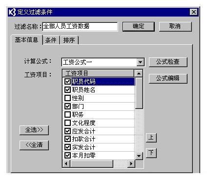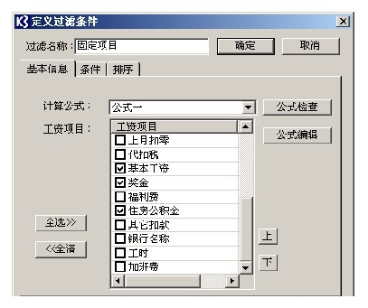 工资数据的输入:     定义过滤名称,,选择一个相应计算公式及所需要的工资项目