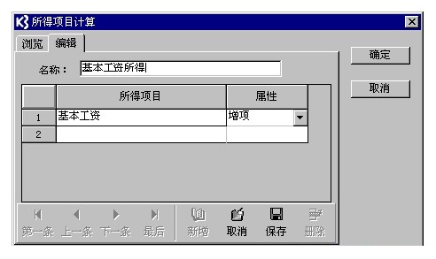 1)  设置所得项.通过编辑,新增.名称可定义为基本工资所得,选择基本工资.