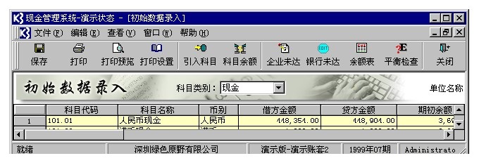 2.通过点击工具条上的科目余额,从总帐系统中引入科目的余额.