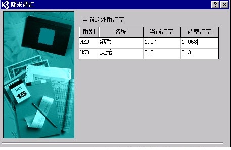 1、单击“期未处理”中的期调汇将弹出下图窗口:
