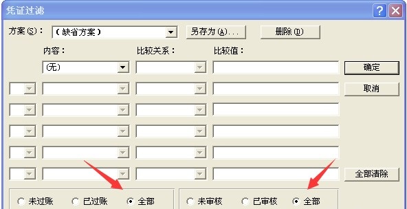 如果做了凭证,无法查看到,一般都是过滤选项和用户权限设置问题。