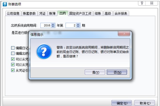 3.年中启用出纳系统,需将出纳启用期间设置与账套当前期间一致。假设随意修改出纳系统启用期间,会导致之前所有的现金日记账被删除。