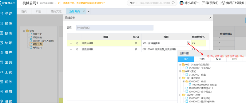 如果该模板还要生成凭证的,更换模板里面的科目即可,如下图操作: